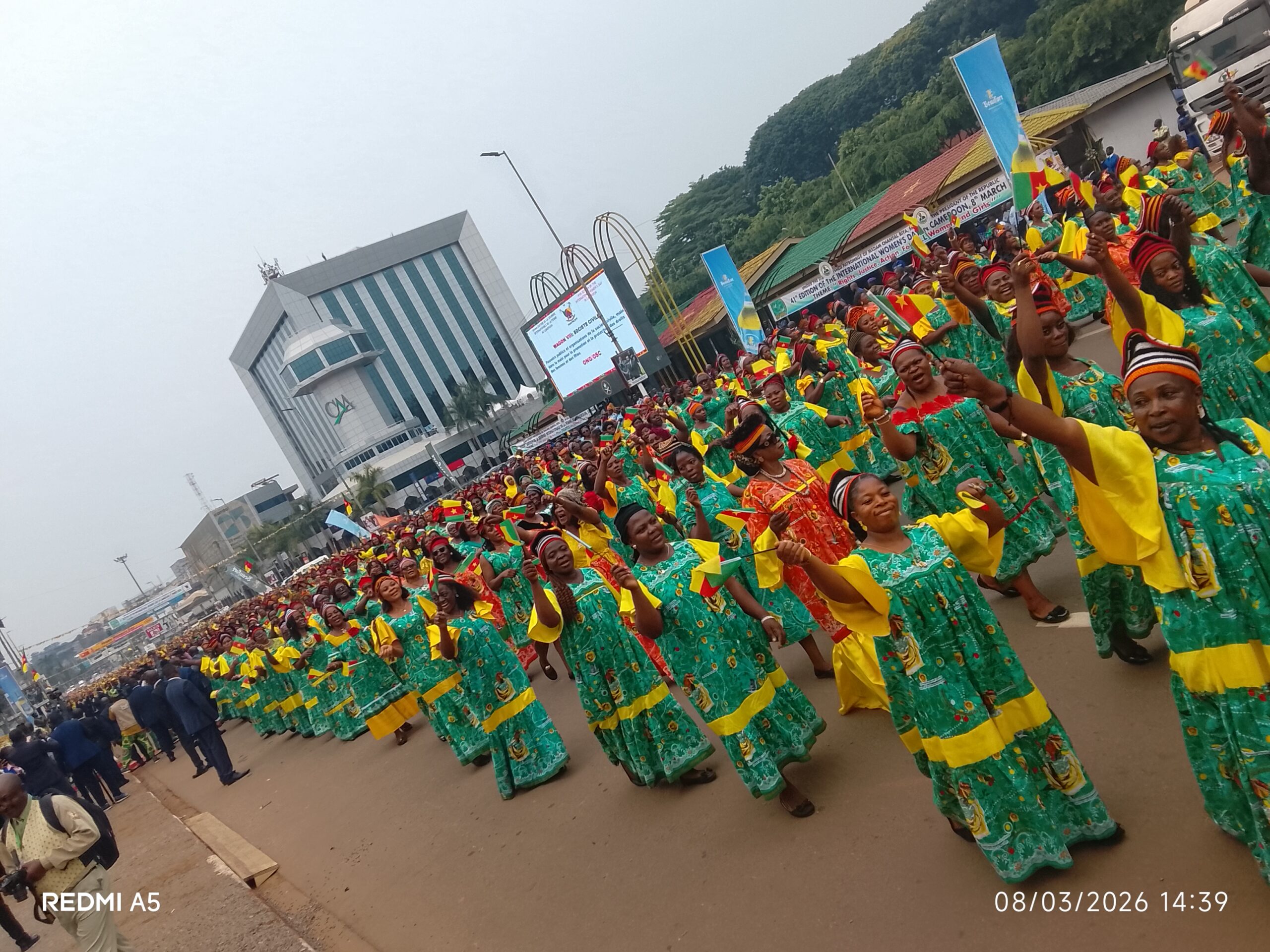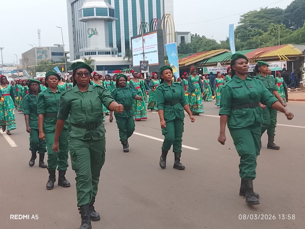 Point d’orgue de cette édition, le grand défilé du 8 mars sur le boulevard a rassemblé près de 40 000 femmes. Bien plus qu’une simple marche, cette mobilisation a été l’occasion pour les participantes de reconnaître les avancées réalisées, mais aussi de réclamer l’accélération du processus législatif visant l’adoption d’une loi contre les violences faites aux femmes. Au boulevard, toutes les administrations publiques et de nombreuses organisations associatives étaient représentées. Femmes militaires, magistrates, diplomates, cultivatrices, élues, commerçantes, conductrices, infirmières, journalistes, écrivaines ou encore techniciennes ont défilé dans une ambiance festive et engagée, illustrant la diversité et le dynamisme de la femme camerounaise. La cérémonie s’est déroulée en présence de la Première dame, Chantal Biya, aux côtés de la ministre de la Promotion de la femme et de la famille, Marie-Thérèse Abena Ondoa.