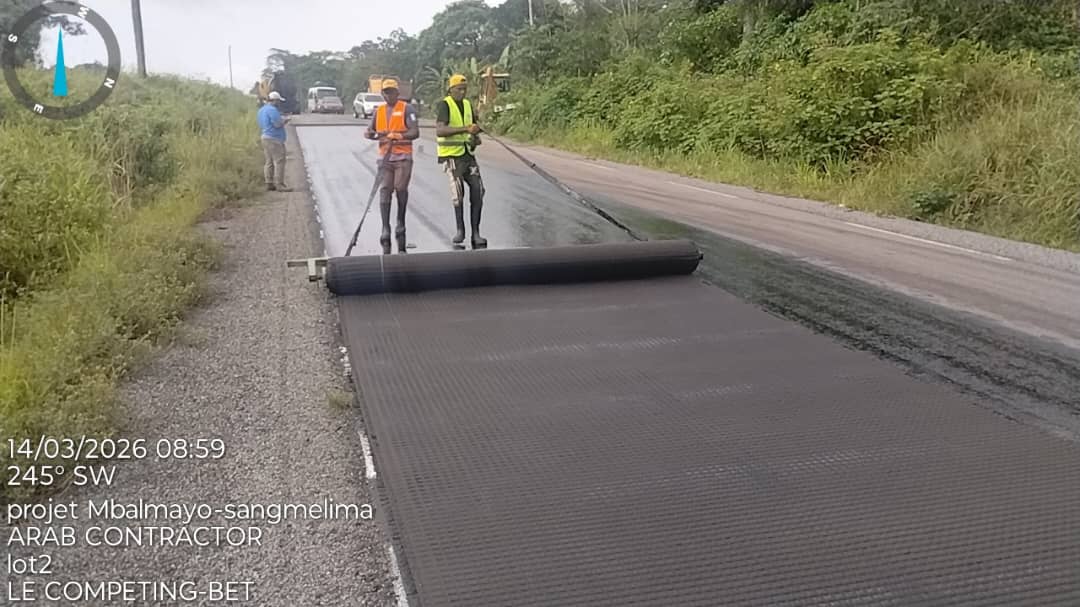 La pose du géogrille, validée par le Maître d’Ouvrage, va permettre à moyen terme de renforcer la structure de la chaussée mais aussi de contribuer à améliorer la circulation sur cet axe stratégique qui relie les départements du Nyong et So’o et du Dja et Lobo, dans les régions du Centre et du Sud.